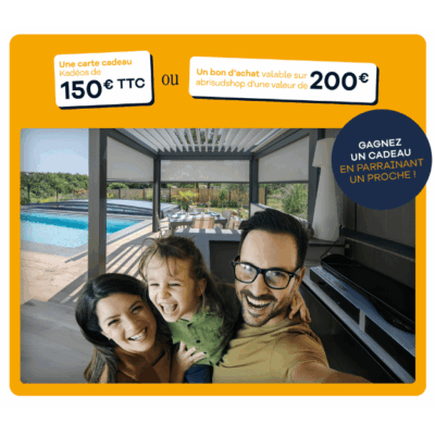 Pour chaque proche recommandé qui concrétise son projet avec Abrisud, nous vous remercions avec un cadeau. Une belle façon de faire profiter votre entourage de notre savoir-faire, tout en étant récompensé(e).